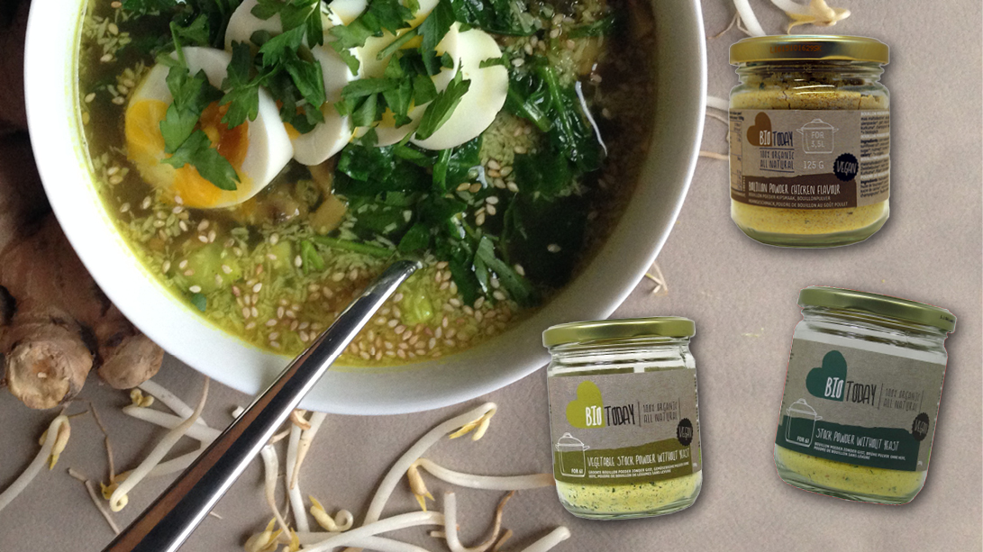 Voeg het aspergewater toe en de stukjes aardappel en asperges. Schep een koffielepel of drie van de veganistische bouillon in de pan. Breng aan de kook en laat zachtjes pruttelen.